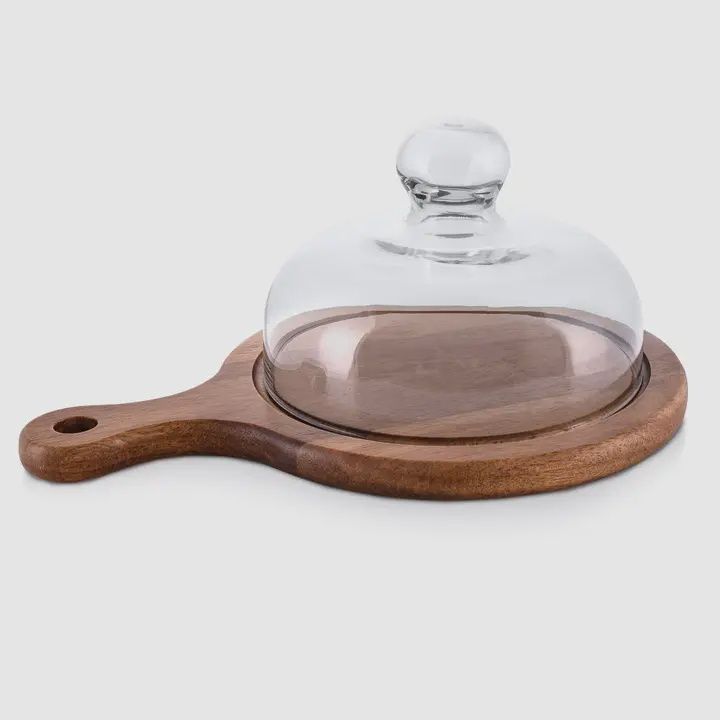 Looking for an elegant way to serve your hot and unique dishes? The small serving board is an excellent choice. Made of durable acacia wood, it can withstand high and low temperatures, making it perfect for serving both hot and cold snacks. This board also works well for presenting pastries and cookies. The scratch-resistant glass cover not only protects the food from drying out or excess moisture but also adds a unique touch of sophistication to the dish.